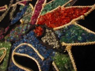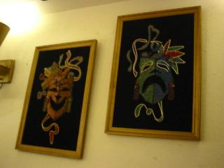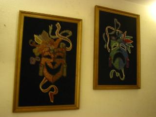 | ペアツーフェイス壁掛け 50-60年代 ウッドフレームにブラックベルベットベース、カラーロックアートの泣き笑い。 |