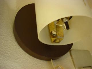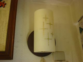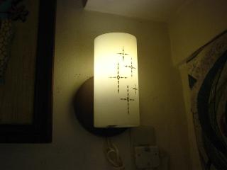 | アトミックウォールランプ / 50-60年代. スターバーストアクセントのシリンダーデザイン壁掛け用ランプ。シェードはプラスチック製です。 電源は家庭用コンセント対応コードで、スイッチはランプソケット下に付いています。 |