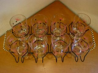 | アトミック グラス&ラックセット / 50年代 クロピンの花火?スターバースト?プリントのグラス8個とブラックワイヤーラック(キャディ)の超クールなセット! |