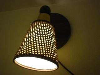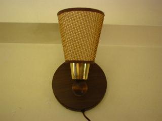 | モダンウォールランプ 50-60年代 ビンテージウォールランプです。シェードはファイバーグラス製で外側にウッドメッシュ、後部にウッドボールデコレーション、ベースは木目のメタルウォールマウント。 電源は家庭用コンセント対応です。スイッチはコード中間に付いていてロータリータイプです。 |