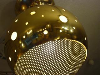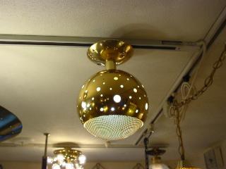 | アトミックシーリングランプ / 50年代 ドーム型ゴールドメタルスポットにメッシュカバー。スプートニクとの相性もバッチリ!玄関やセカンド照明としても最適です! 電源は引っ掛けシーリングに交換済みですのですぐに設置可能です。 |