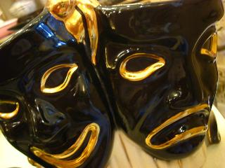 | ツーフェイスプランターベース / 50年代 カリフォルニア陶器 泣き笑いのプランター置物です。ブラックフェイスにゴールドアクセントがクール! |