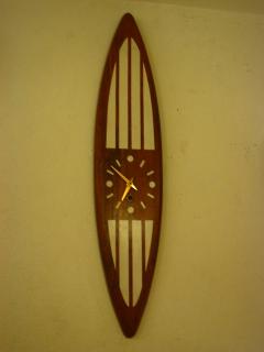 | ハワイアンウォールクロック / 50-60年代 BELART社 サーフボードデザインの壁掛け時計。 ムーブメントはバッテリータイプに交換済みですので時間も正確です。 |
