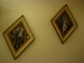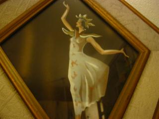 | ペアオリエンタルダンサーアートウォールデコ / 50年代 男女のオリエンタルダンサー壁掛けペアです。ゴールドペイントされたウッドフレームにガラスカバー、フレームまわりにアイボリーカラーのデコレーションテープ(柄入り)がはめ込んであります。 |