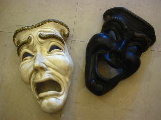| ペアツーフェイス壁掛け 50年代 / 1953, ユニバーサル社製 MADE IN USA. ユニバーサル社の代表作、チョーク製のツートーン泣き笑いです。 |