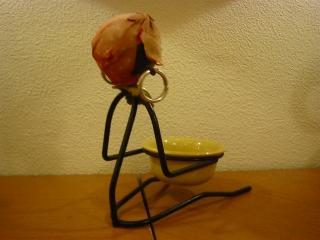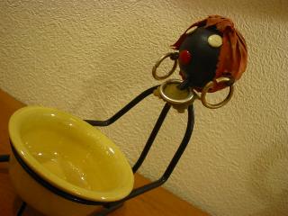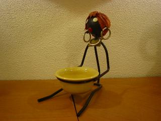 | ブラックワイヤー置物/灰皿/小物入れ / 40-50年代 陶器製の小物入れ付きの黒人タイプのワイヤーシェルフデコ。 |