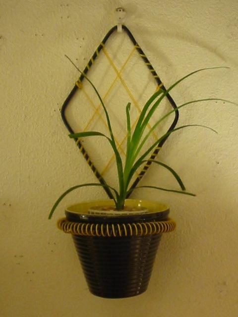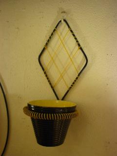 | ビンテージアトミックモダンウォールプランター / 50年代 USA. ブラックワイヤーのアトミックフレームに陶器製プラントポット。 壁空間のアクセントにGOOD! |