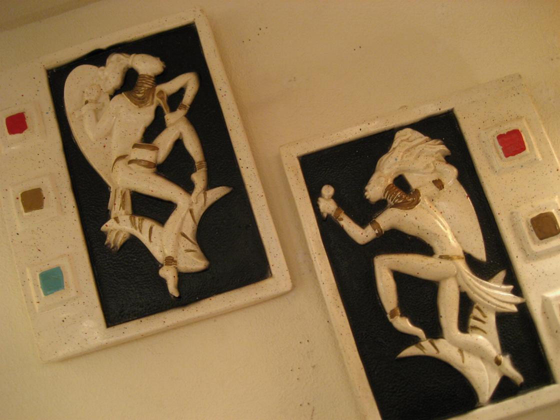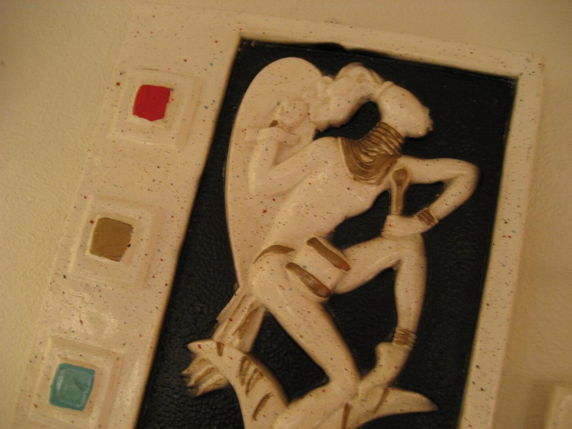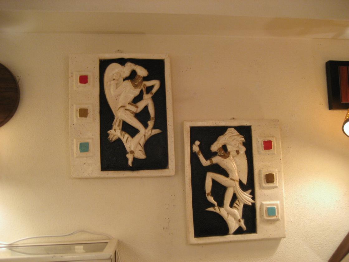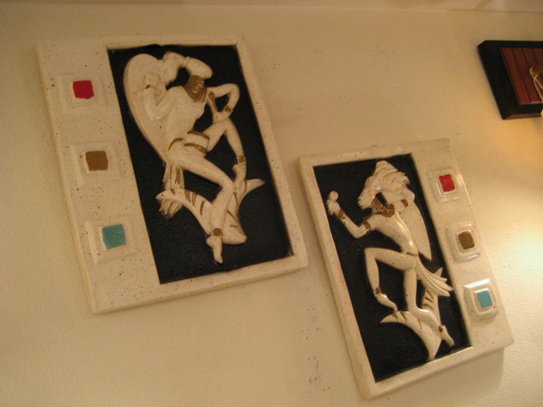 | ペアアフリカンダンサー壁掛け 50年代 チョーク製のアフリカンミュージシャン&ダンサー。カラーアクセントがクールなビンテージ壁掛けです。 |
