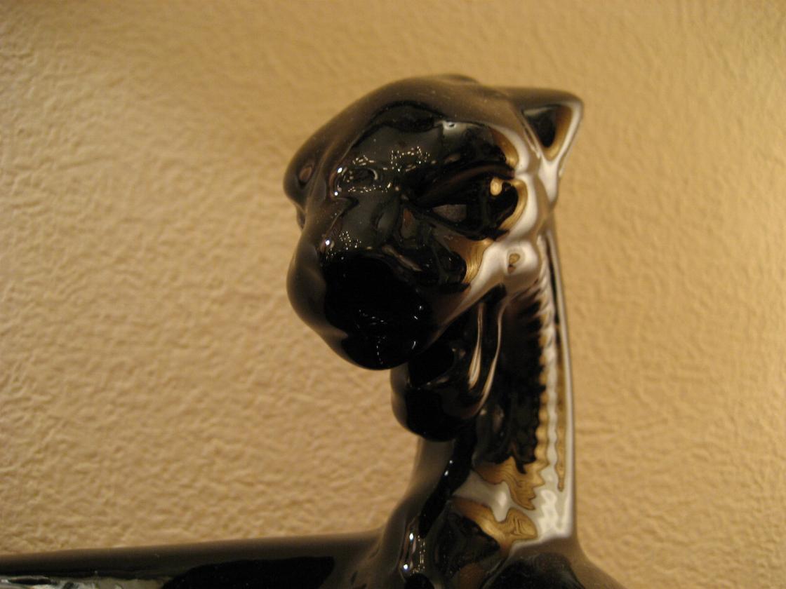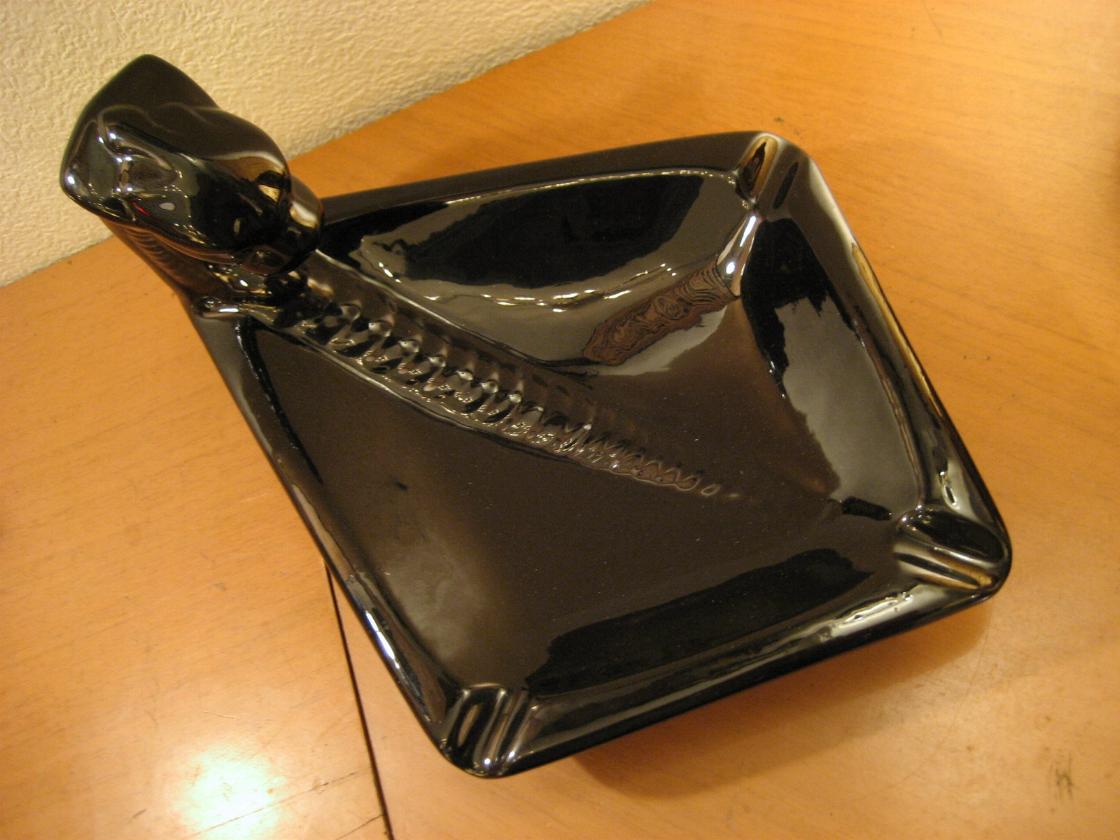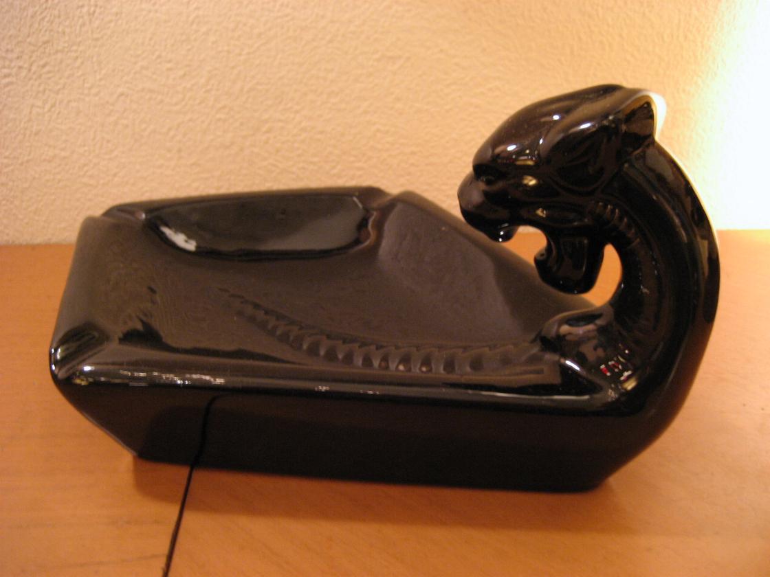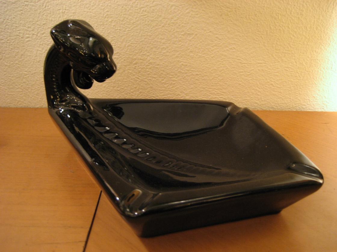 | ブラックパンサー灰皿 / 50年代 陶器製のパンサーアッシュトレイ。ダイヤ型の灰皿に黒豹の頭部が一体化したクールな灰皿!置物としてもGOOD。 |