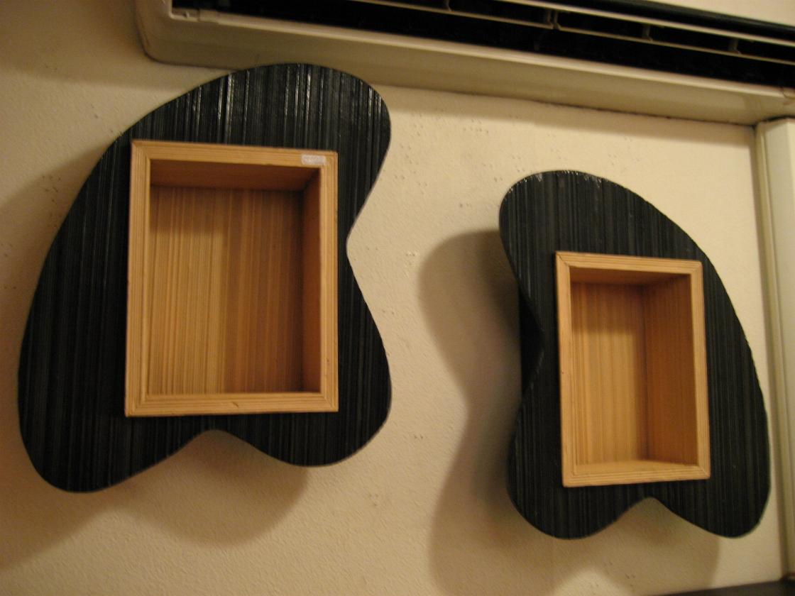 | ペアブーメランシャドウボックスシェルフ / 50年代 アメーバブーメランシェイプのアトミックシャドウボックスのペア。置物などのディスプレイにGOOD! |
