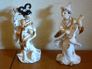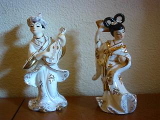 | ペアオリエンタル置物 / 50年代 レフトン 陶器製のオリエンタルダンサー&ミュージシャンペア。男性が楽器を演奏、女性が踊っているデザインです。 |