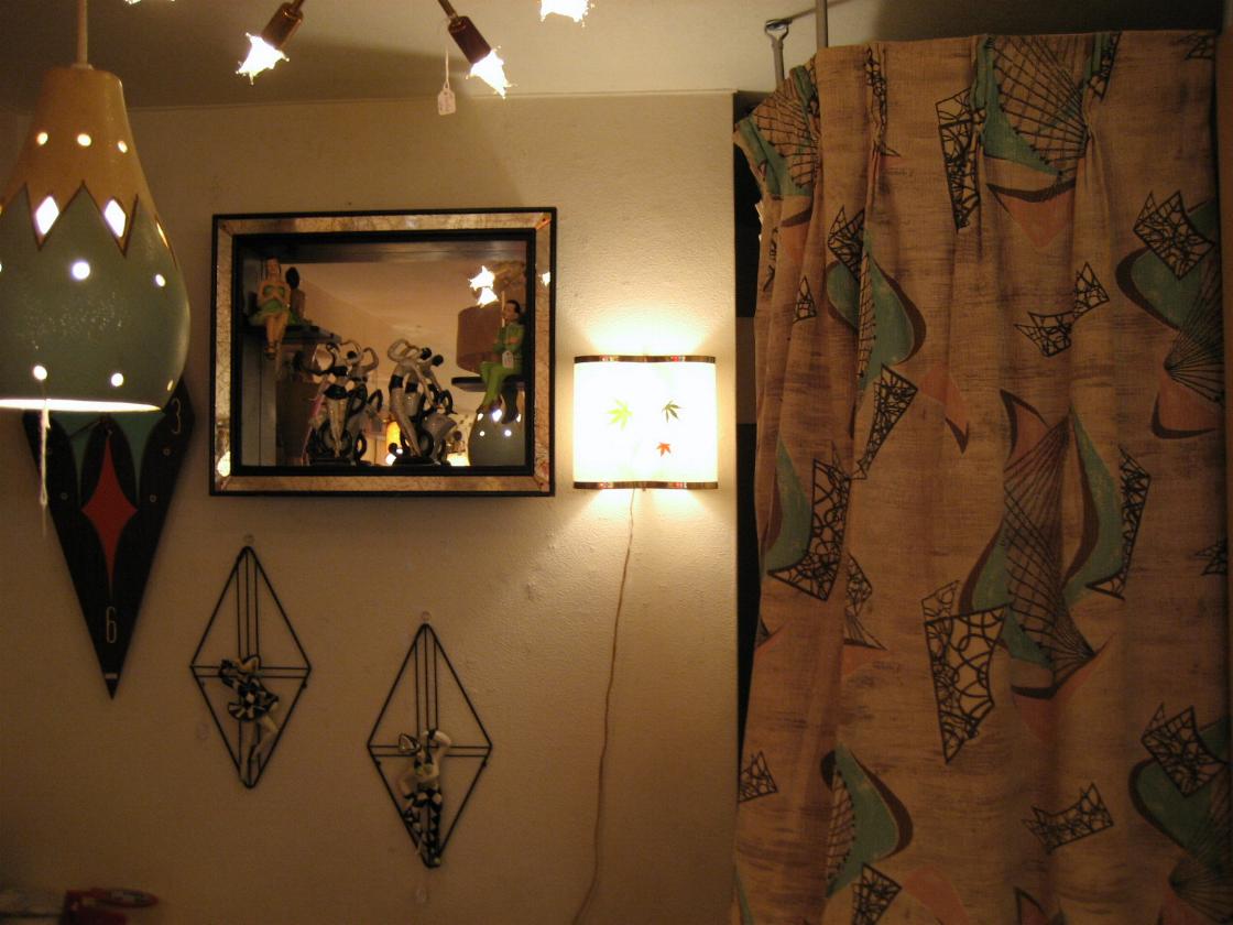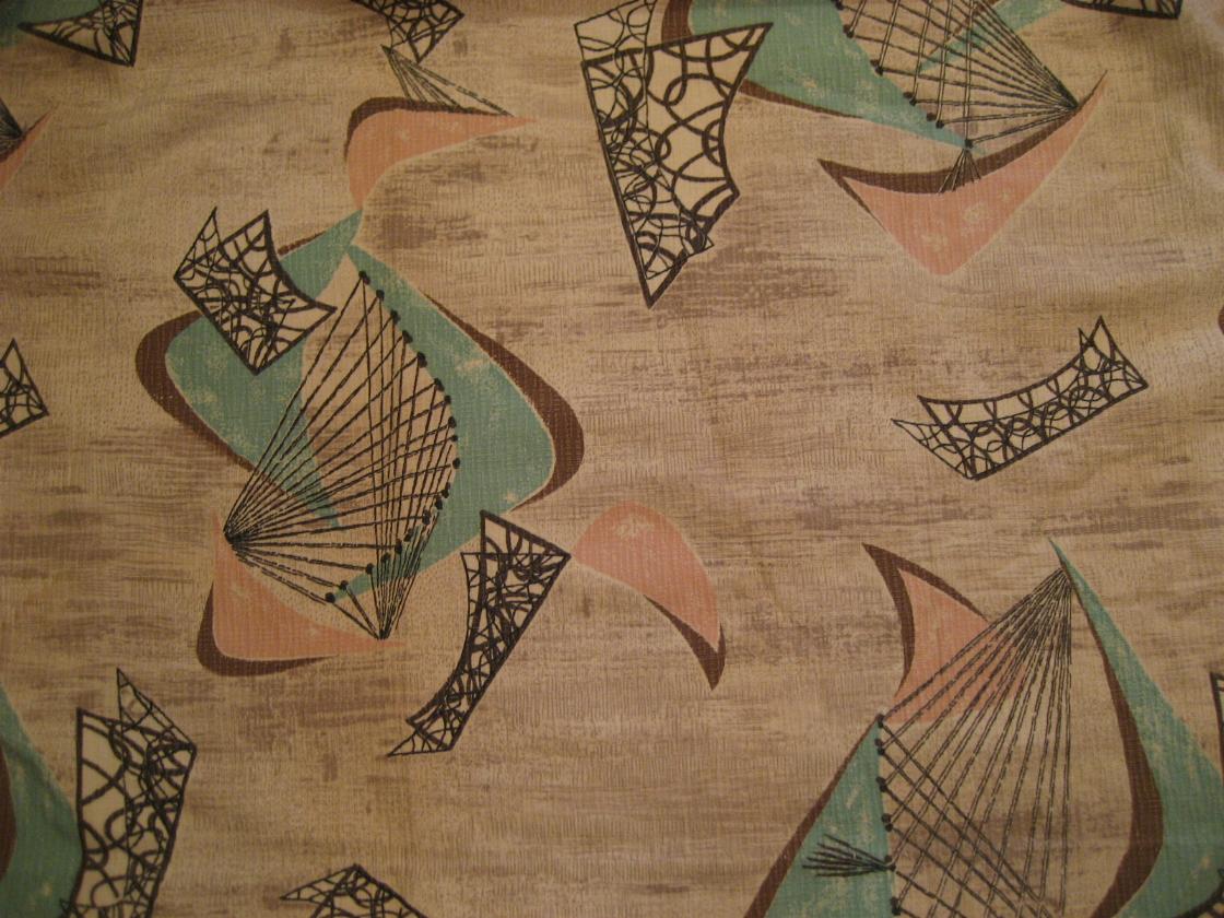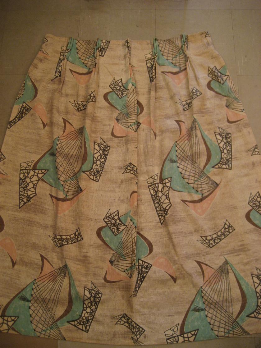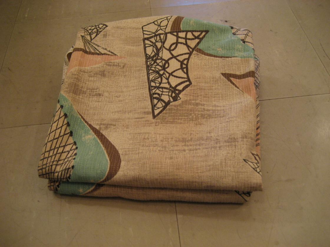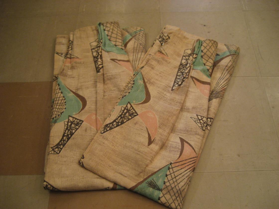 | ビンテージアトミックブーメランプリントカーテン / 50年代. USA. ビンテージのカーテンです。色はベージュグラウンドベースカラーにピンク・ミントブルー・ブラウン・ブラックなどのブーメランアトミックプリント。トップ部分はカーテンプリーツが取ってあり、裏面はカーテンフックも付いています。素材はコットン。 |