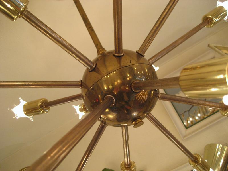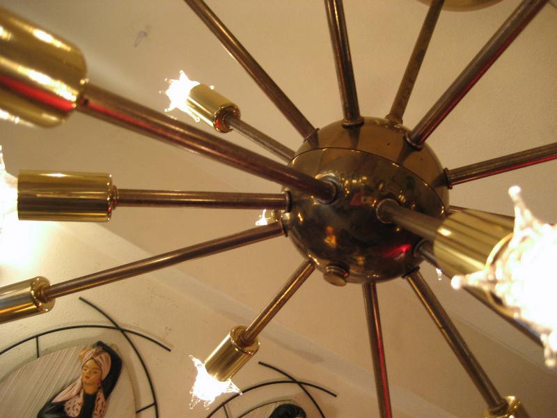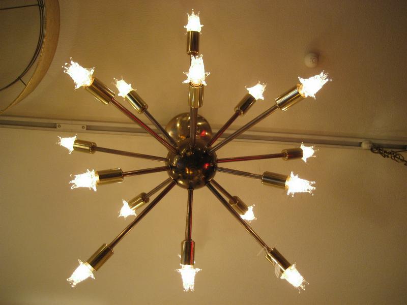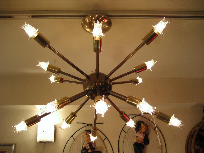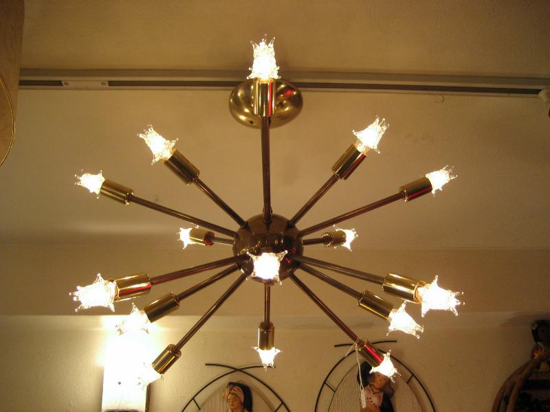 | スプートニクランプ 50年代 16灯タイプ (スター球16個付き) オリジナルビンテージのスプートニクシーリングランプ / シャンデリア 16発のスプートニクです。電源は家庭用引っ掛けシーリングに交換済ですのですぐに使用できます。 スター球は現行品です。 |