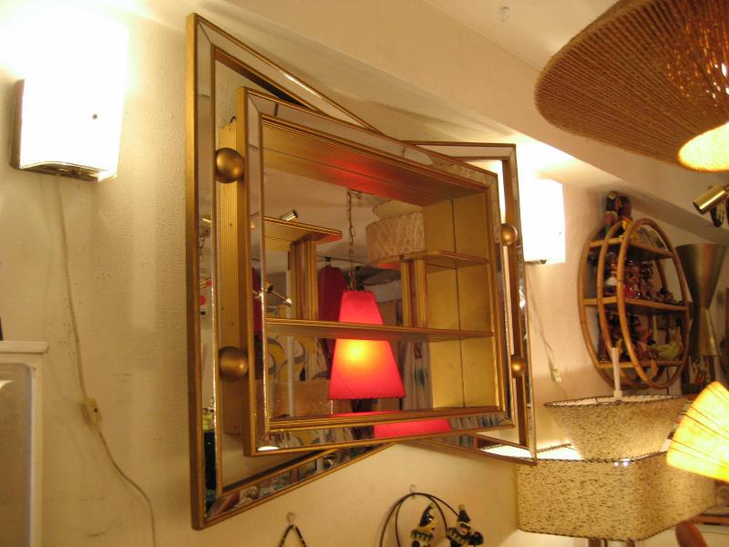 | アトミックシャドウボックスウォールシェルフ / 50年代 ミラーはめ込みタイプのアトミックなシャドウボックスです。独特な両サイドのウイングフレームにボールデコレーション。かなりクールでカッコイイです! |