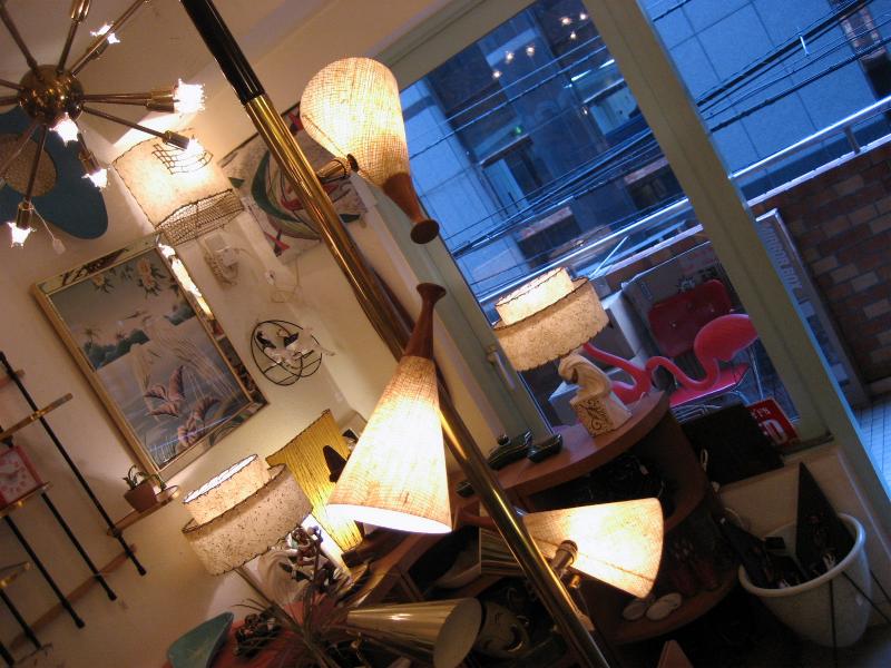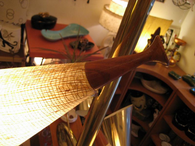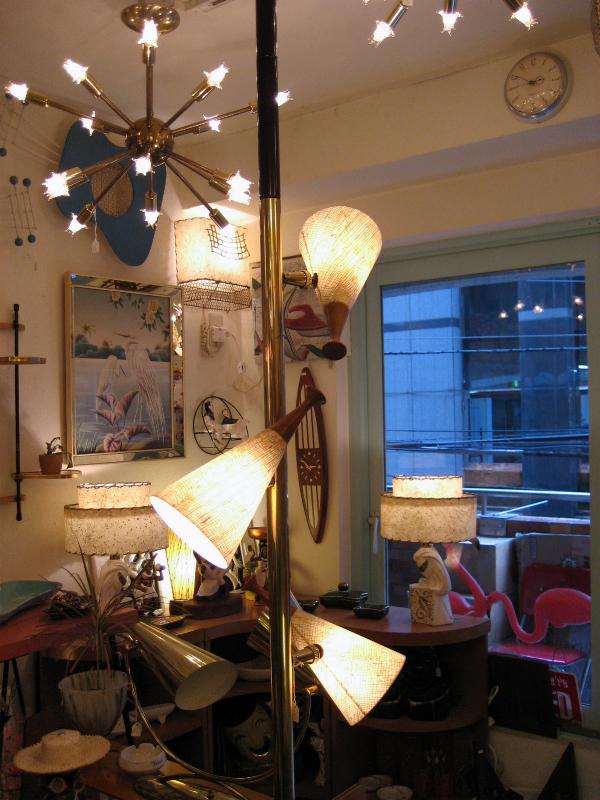| ミッドセンチュリーフロアポールランプ / 50-60年代. 3スポットのビンテージフロアランプです。天井と床に突っ張らせるスプリングロッドタイプ。各シェードはファイバーグラスでそれぞれシェード後部にウッドデコレーション。 電源は家庭用コンセント対応コードで、スイッチはポールに付いていて3WAYタイプ(1・2・3・OFF)です。 |