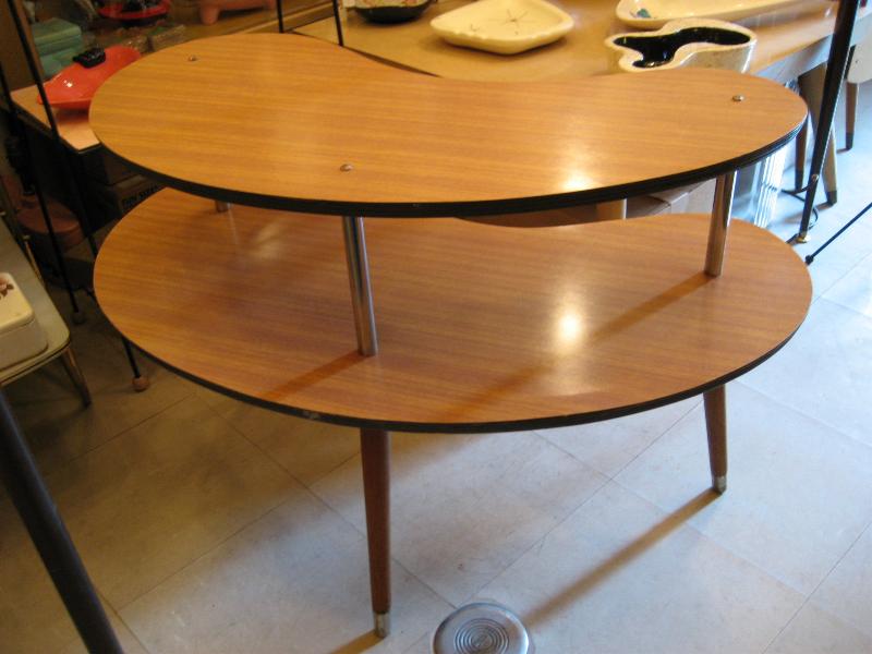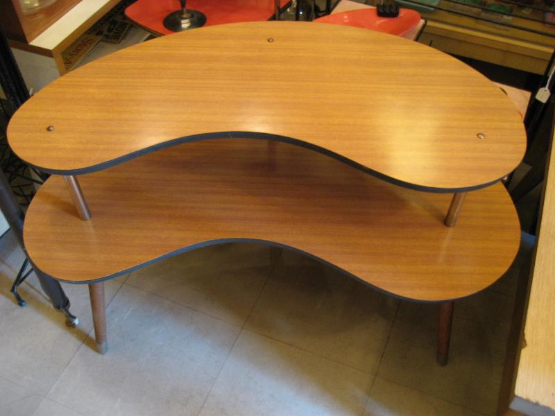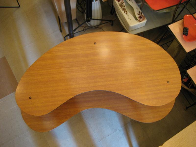 | アトミックシェルフテーブル / 50-60年代 ブーメランシェイプの2段シェルフテーブル。3本足タイプで天板は化粧合板。シェルフとしてはもちろんソファやチェアサイドテーブルとしてもクールなピースです! |