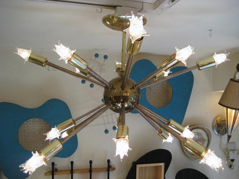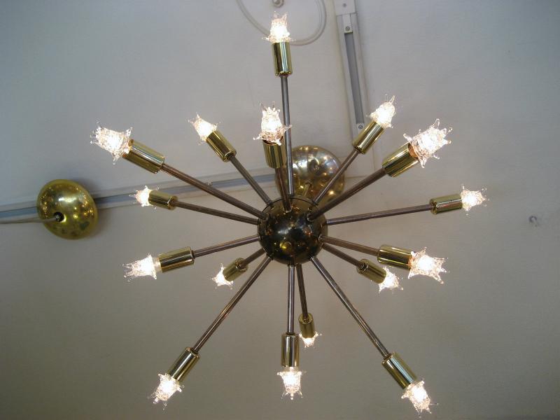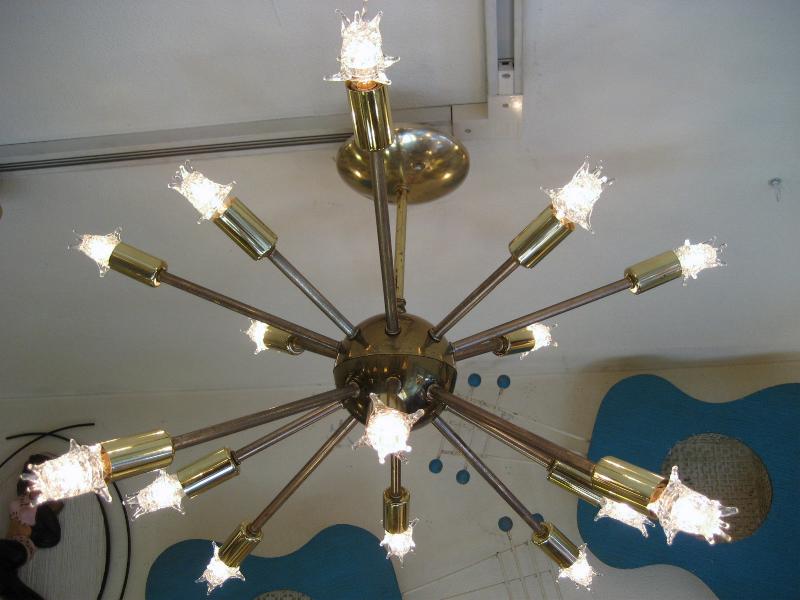 | スプートニクランプ 50年代 16灯タイプ (スター球16個付き) ビンテージスプートニクシーリングランプ / シャンデリア 16発のスプートニクです。天井までのシーリングアームが短めですので低めの天井でもOKです。 電源は家庭用引っ掛けシーリングに交換済ですのでかんたん設置、すぐに使用できます。 スター球は現行品です。 |