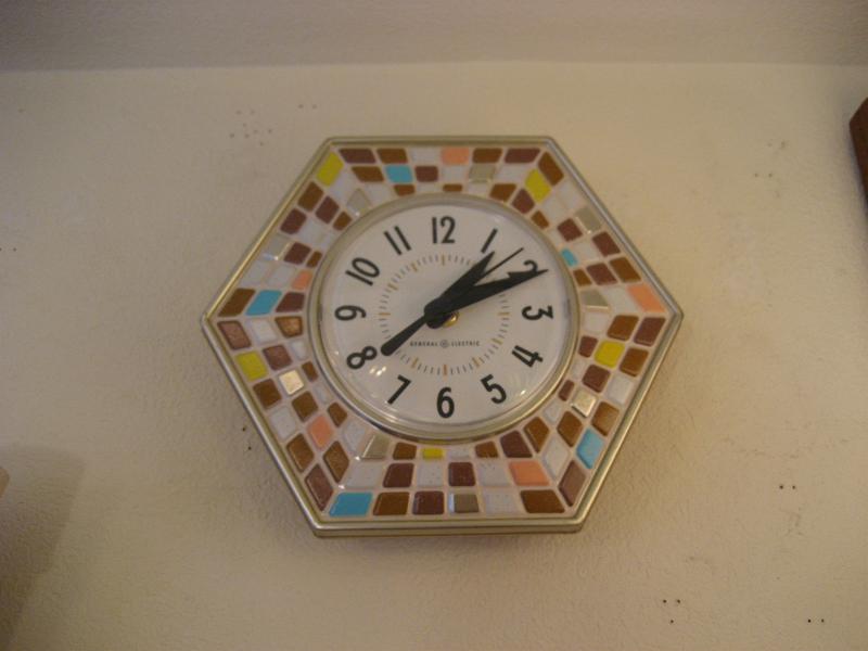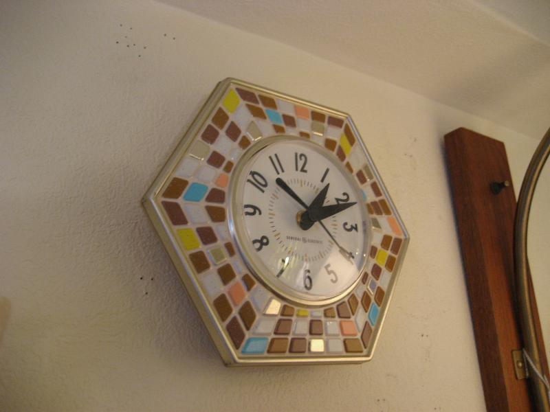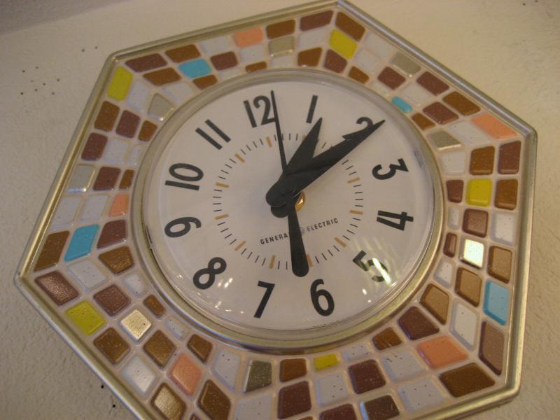 | ビンテージウォールクロック / 50-60年代 フェイクタイルデザインの壁掛け時計です。ムーブメントはバッテリータイプ(単3x1個使用)に交換済みですので時間も正確です。 |