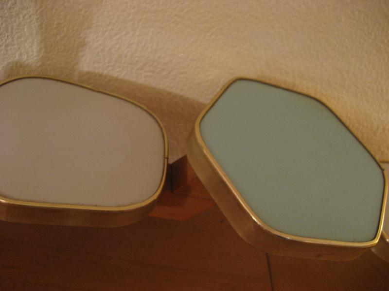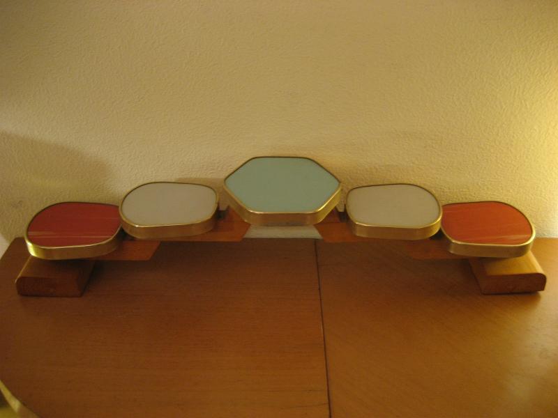 | アトミックテーブルトップシェルフ / 50年代 シェルフやテーブルトップに使用する5シェルフタイプのビンテージ飾り棚です。写真のように置物やプランターなどのディスプレイにGOODなピース!カラー天板がクールな追加シェルフです。 |