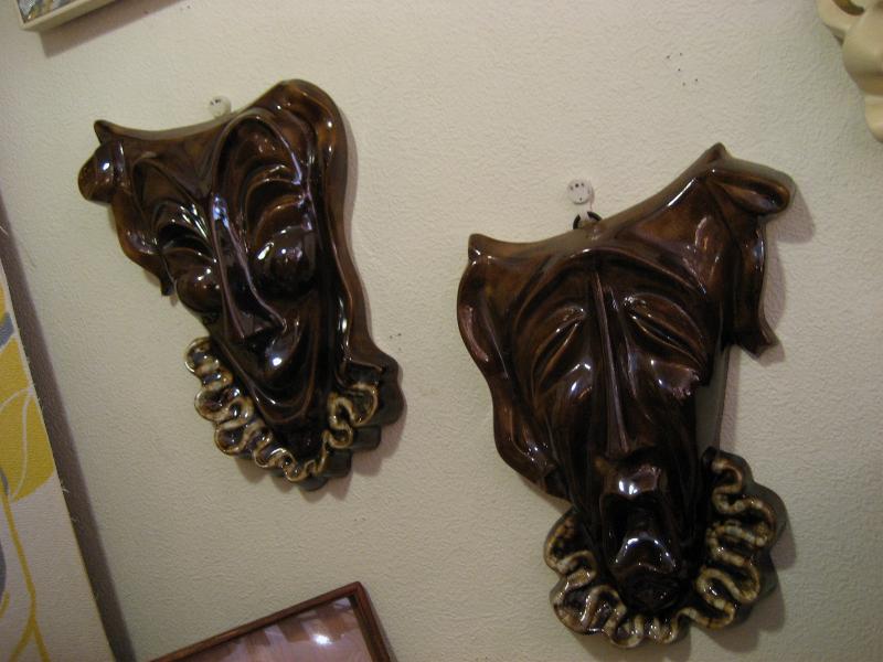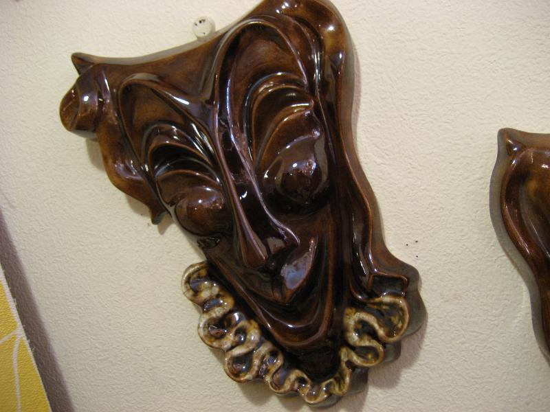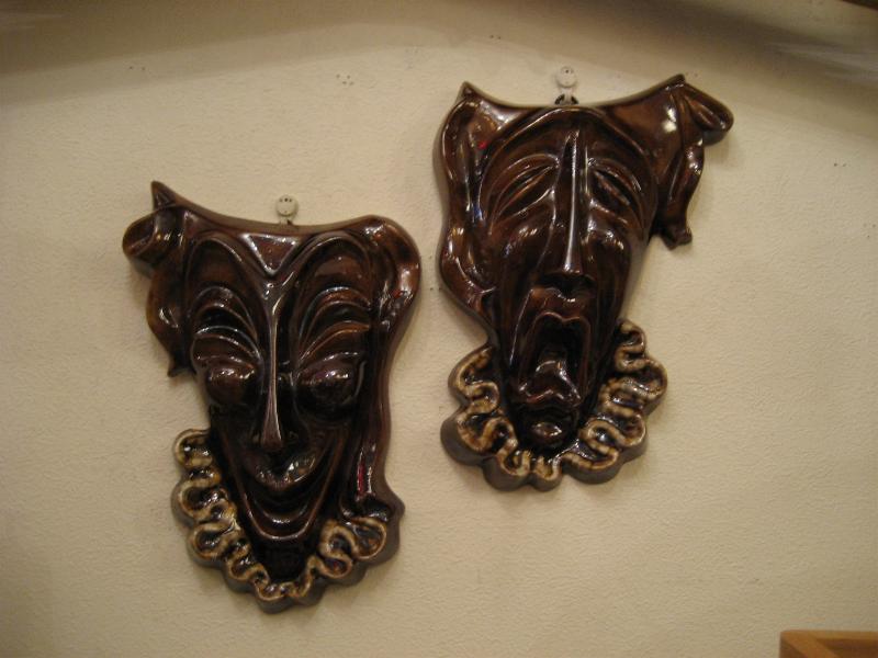| ペア ツーフェイス壁掛け 70年代 陶器製のビンテージツーフェイスウォールデコ。 |