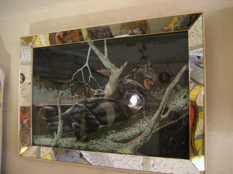 | ブラックパンサーミラーフレームウォールデコ / 40-50年代 ミラーはめ込みフレームタイプの黒豹ビンテージウォールデコです。リアルパンサーがかなりクール!前面カバーはガラスです。 |