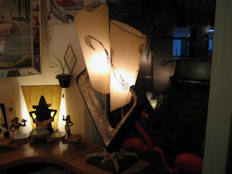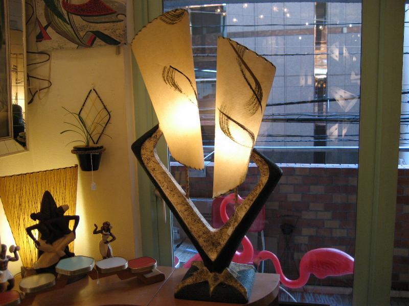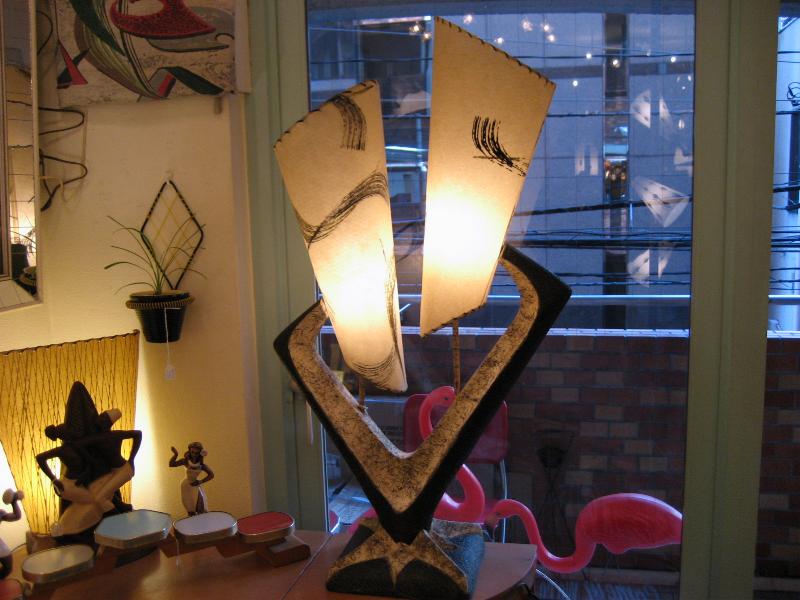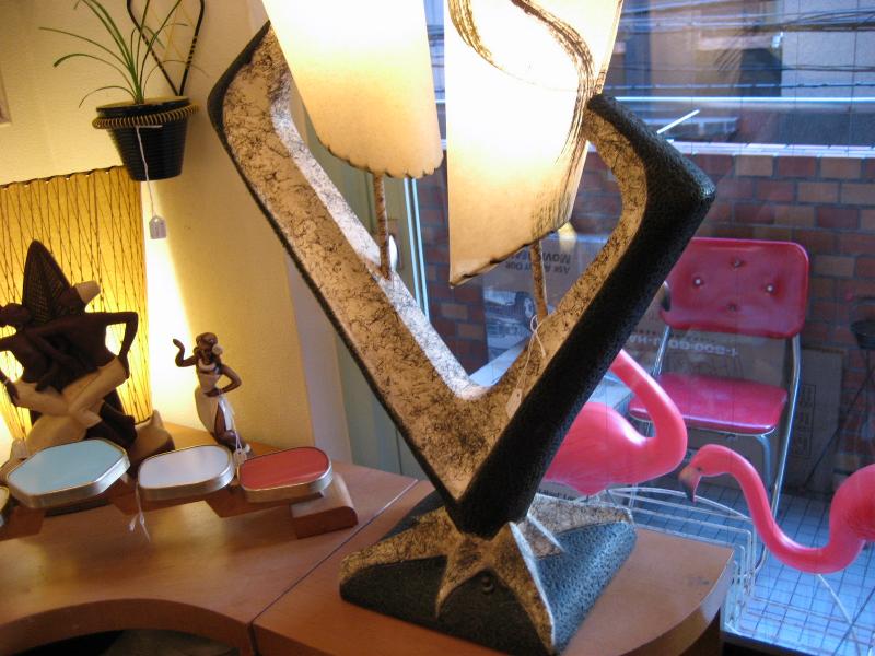 | アトミックシェードランプ / 50年代 USA ダブルシェードのビンテージシェードランプ。50-60年代のビンテージランプを紹介している洋書「Lamps of the 50s & 60s」の表紙に掲載されているレアシェードランプです。スイッチはランプベースに付いています(3WAYタイプ)。 |