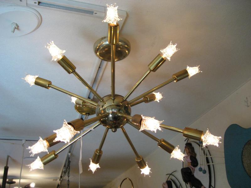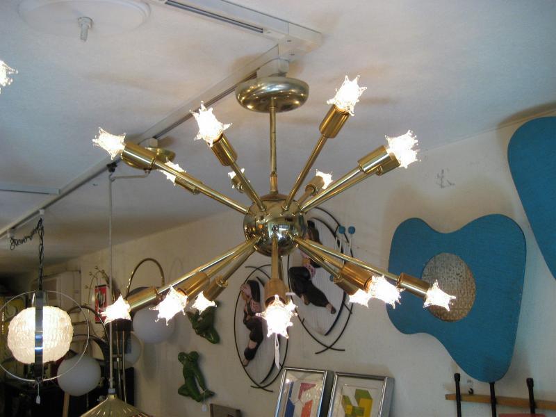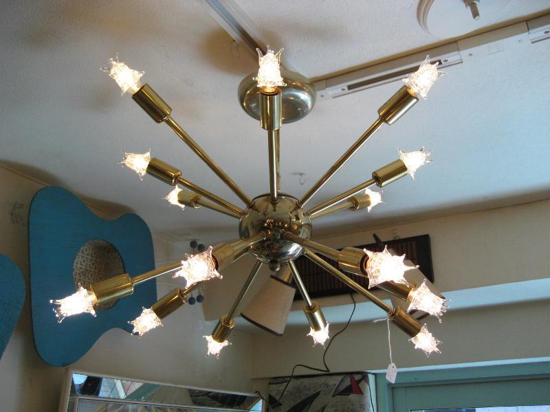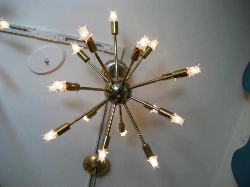 | スプートニクランプ 50年代 16灯タイプ (スター球16個付き) ビンテージスプートニクシーリングランプ / シャンデリア 16発のスプートニクです。 電源は家庭用引っ掛けシーリングに交換済ですのでかんたん設置、すぐに使用できます。 スター球は現行品です。 |