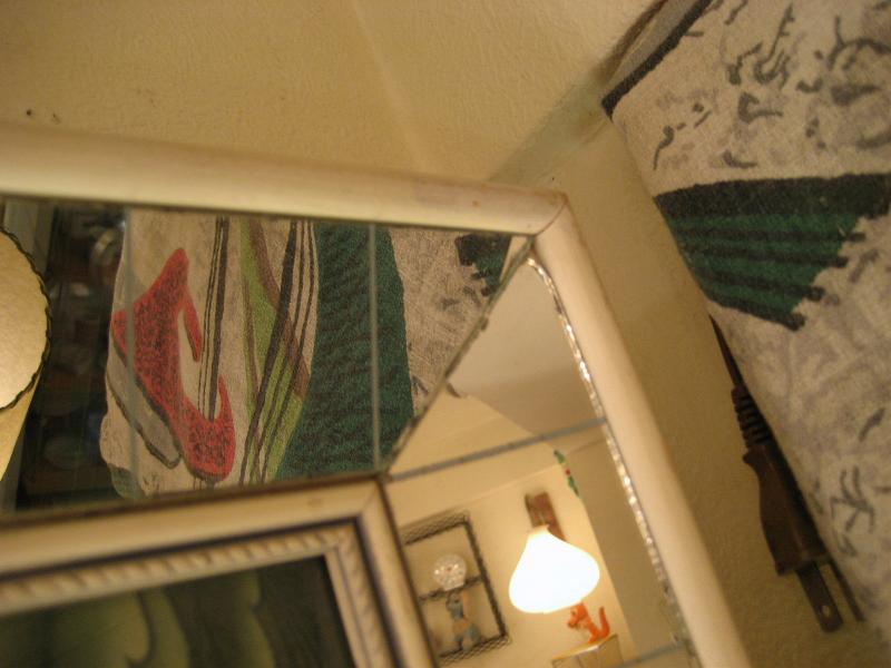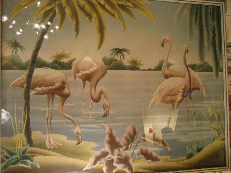 | ターナーミラーフレームウォールデコ / 40-50年代 ウッドフレームまわりにミラーはめ込みタイプのビンテージターナーです。ターナーの代表的なピンクフラミンゴ。前面カバーはガラスです。 |