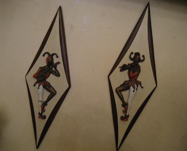 | ペアハーレクインミュージシャン壁掛け 50-60年代 バーウッド社製のダイヤ型ハーレクインミュージシャンウォールデコ。 |
