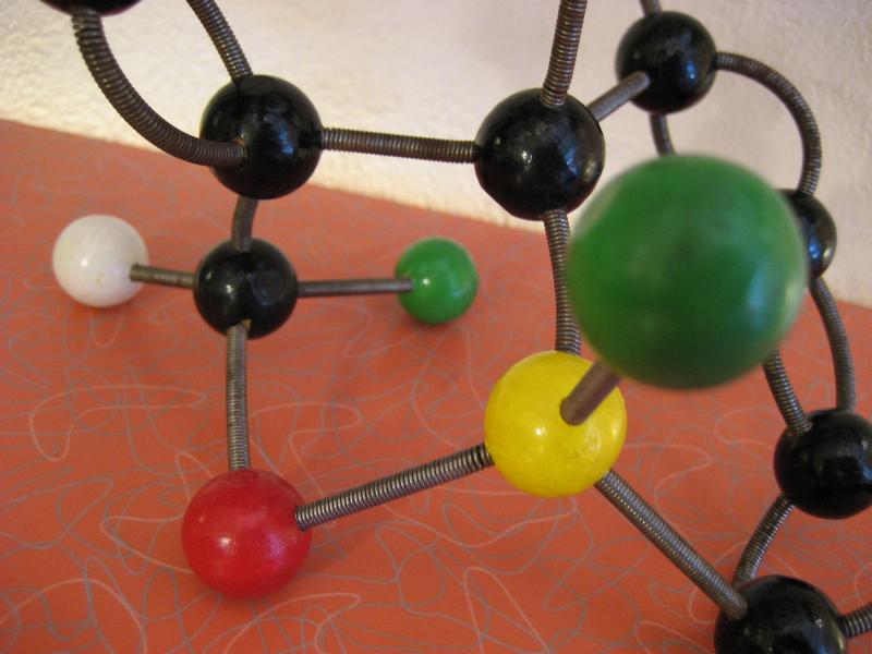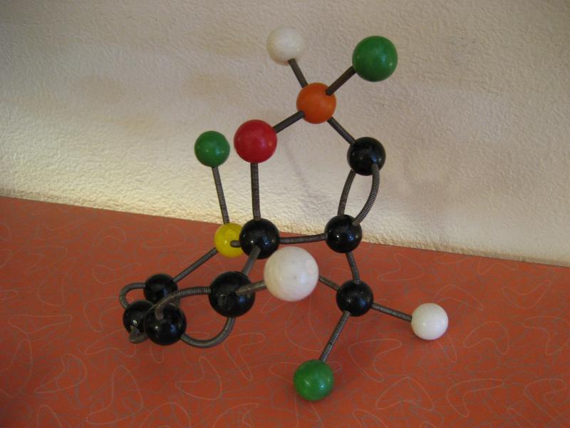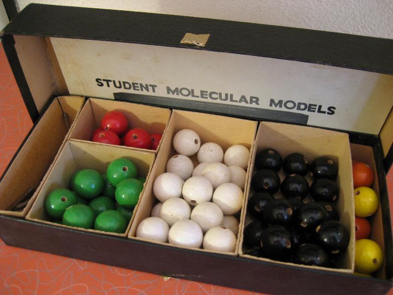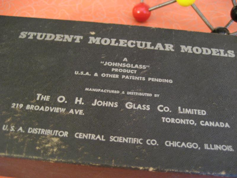 | ビンテージアトミックオブジェ 50年代 USA. オリジナルBOX & 取説付き ビンテージ元素分子の組み立てキット。その昔、学校の教材として授業などに使用されていたものと思われます。6色のカラーボールに2種類の長さのスプリングのコネクター付き。元素分子を調べて勉強しても良し、自由につなぎあわせて組み立てて自分なりのクールなアトミックオブジェを作ってもGOODです! |