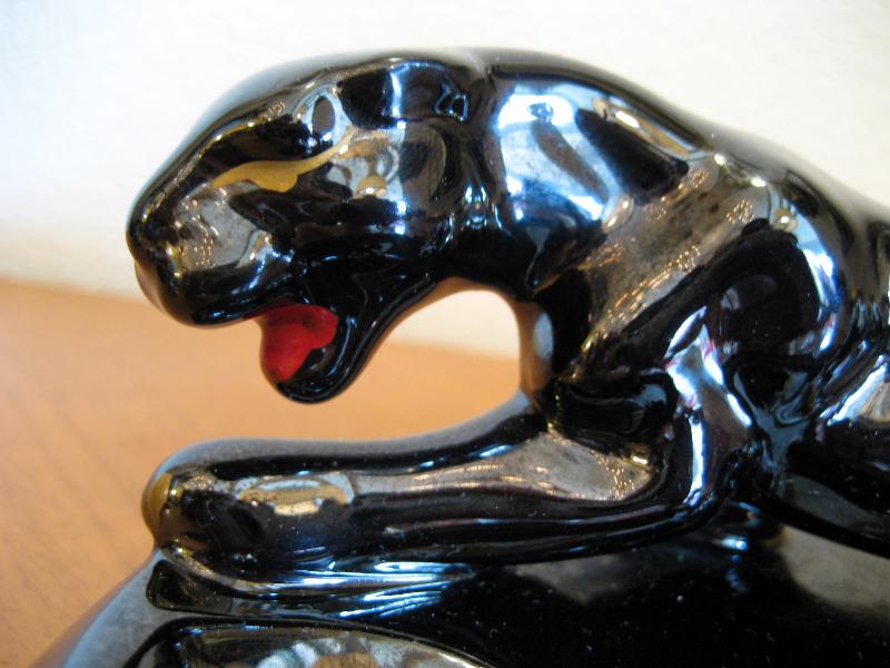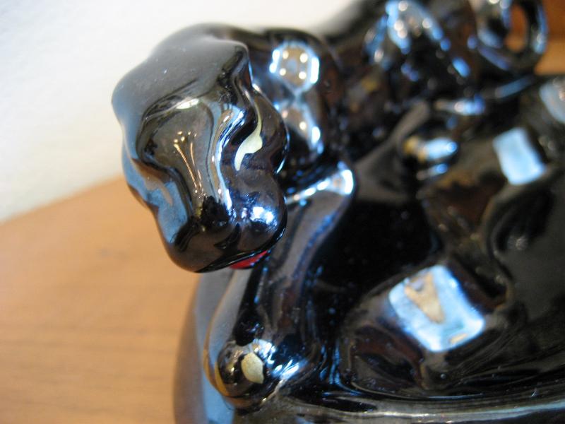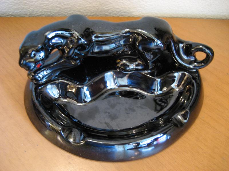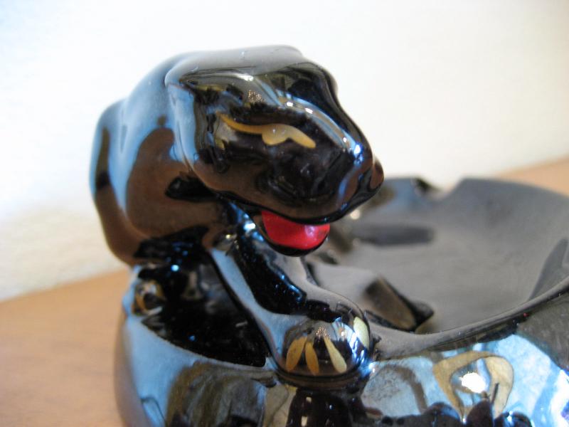 | ブラックパンサー灰皿 / 50年代 陶器製のパンサーアッシュトレイ。ブラックベースにゴールド&レッドアクセントカラー。クールな顔の黒豹でGOODピース! |