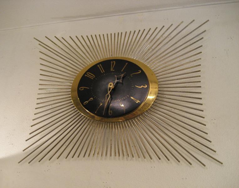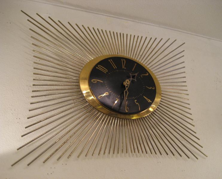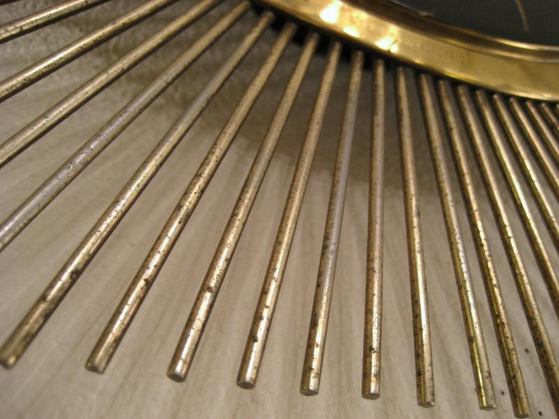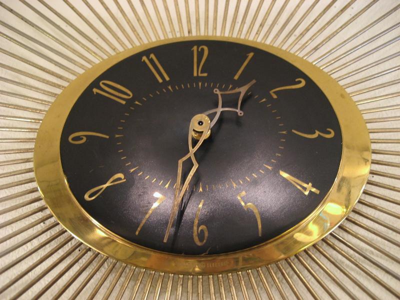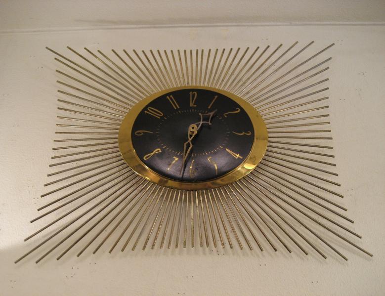 | アトミックスターバーストウォールクロック / 50-60年代 ゼネラルエレクトリック社 USA. スクエアアメーバタイプのスターバースト(サンバースト)壁掛け時計。ゴールドメタルスポークフレーム、ブラックの文字盤にゴールドのダイヤルと針がクール! ムーブメントはバッテリータイプ(単3x1個使用)に交換済みですので時間も正確です。 |