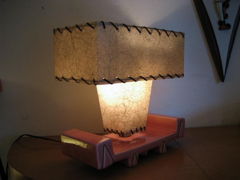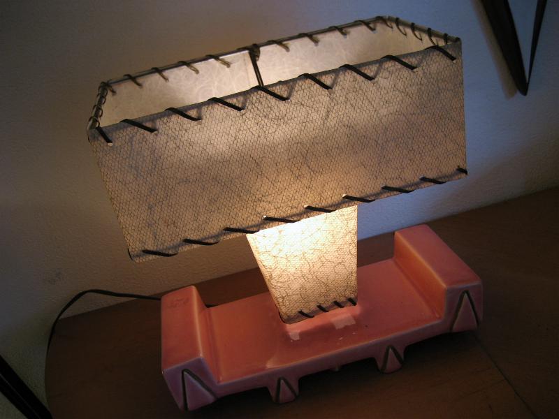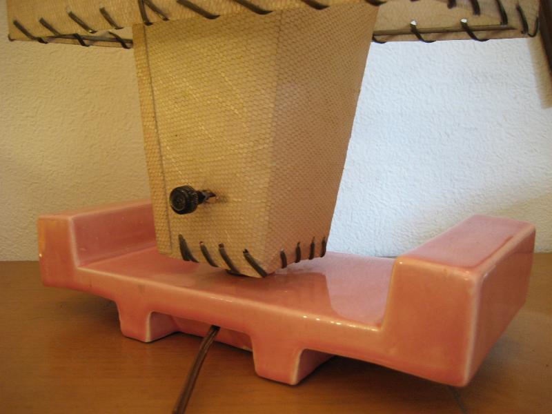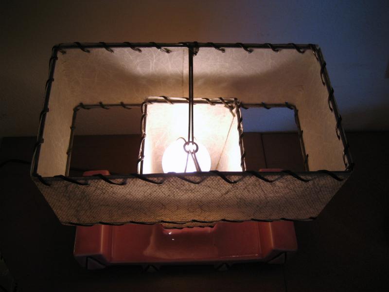 | ビンテージシェードランプ / 50年代 USA スクエアシェイプのダブルシェードがクールなTVランプタイプのテーブルランプ。陶器製のランプベースはピンクにゴールドアクセント。お部屋のアクセントにGOOD! 電源は家庭用コンセント対応コードで、スイッチはシェード後方に付いています。 |