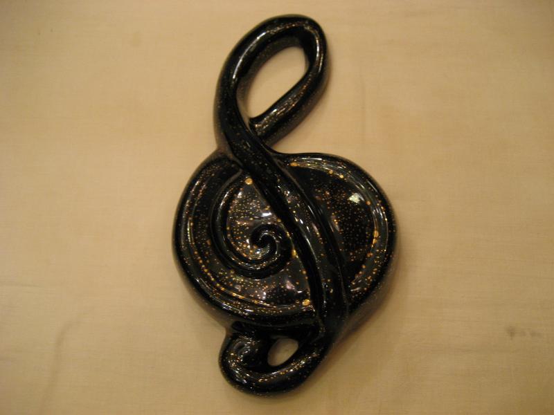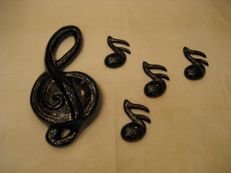 | ビンテージ音符壁掛けセット 50年代 Ceramicraft社製 陶器製のトーン記号&音符の5pcセットウォールデコ。トーン記号はプランターになっています(写真最下部参照)。ブラックベースにゴールドアクセントカラーがクールなウォールピースです! |