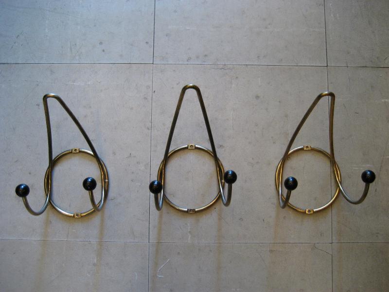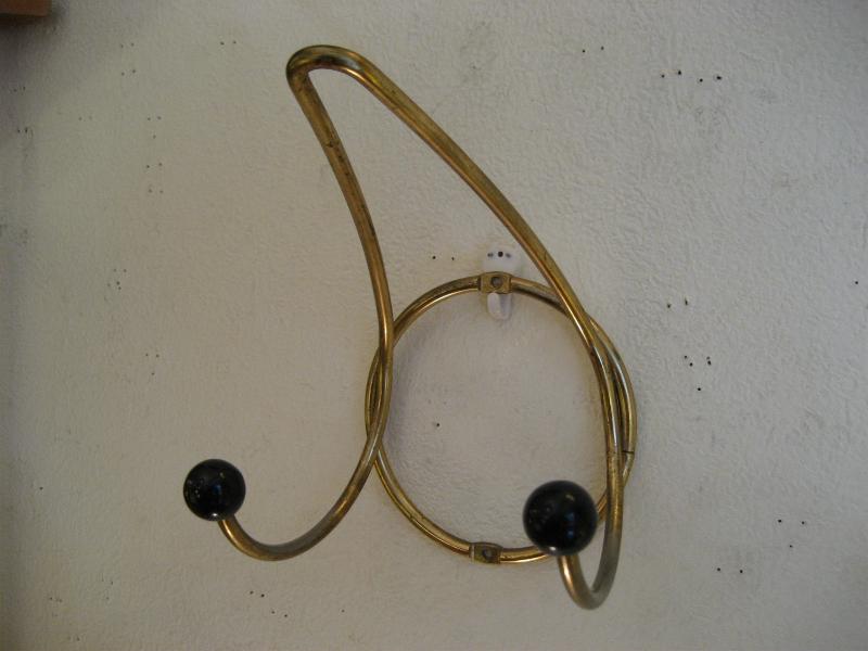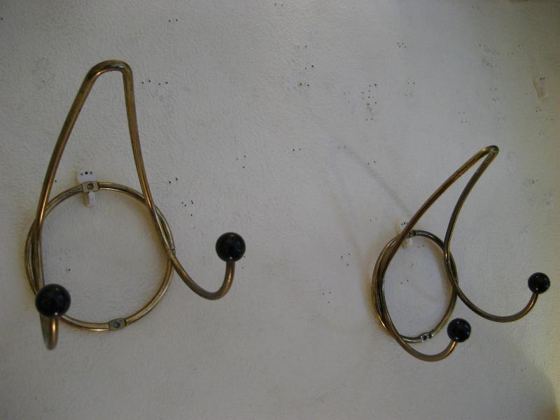 | アトミックコート&ハットウォールフック / 50年代 USA. ゴールドブラスにブラックボールアクセントのウォールフックです。帽子やウェアなどの専用フックですが、当時はゲスト用として一時的にかけておくのにも使われたようですのでお部屋はもちろん玄関などにも良いのでは?アトミックなデザインが今に無いこだわりたいアイテムのひとつ! |