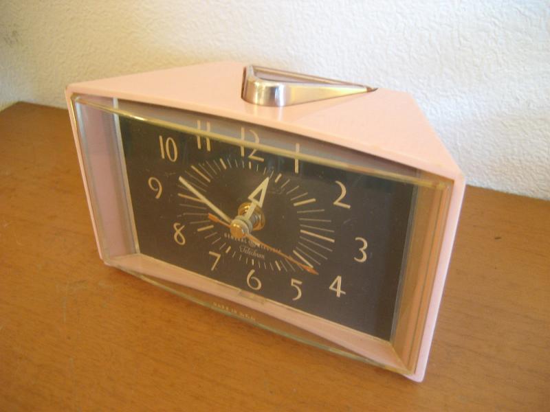 MADE IN USA. GEのアトミックシェイプな置時計です。ピンクボディにブラックフェイスがクール! ムーブメントはバッテリー式(単3x1コ使用)に交換済ですので時間は正確です。 |