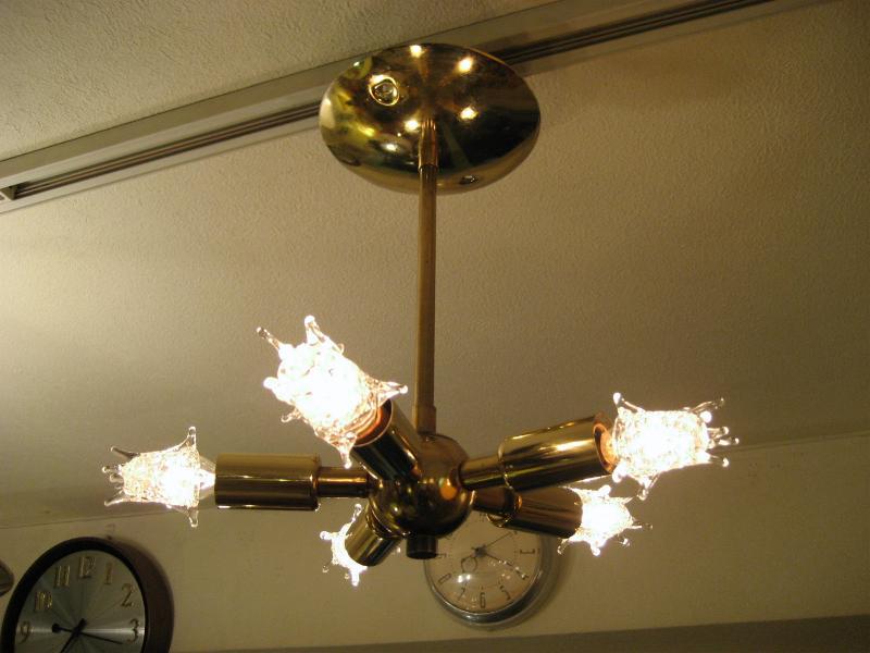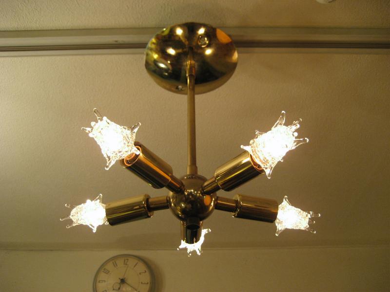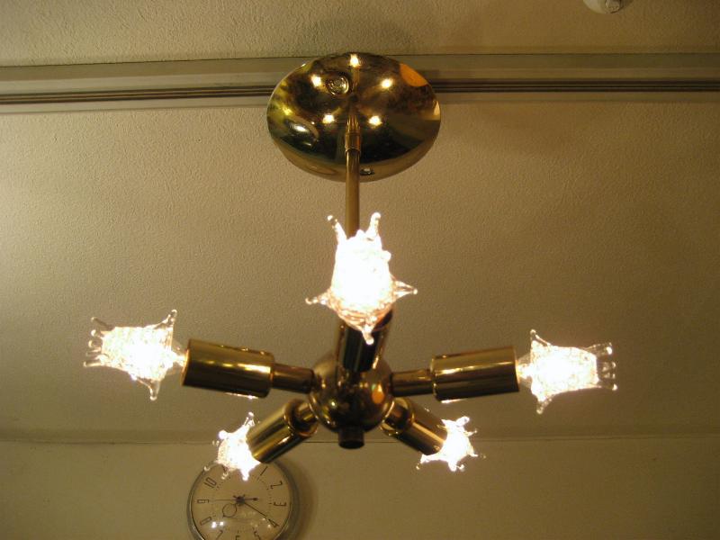 | スプートニクランプ 50年代 5灯タイプ (スター球5個付き) ビンテージスプートニクシーリングランプ / シャンデリア 5発のスモールスプートニクです。小さいタイプでは珍しいセンター球体、セカンド照明にもGOODなライティングピース! 電源は家庭用引っ掛けシーリングに交換済ですのでかんたん設置、すぐに使用できます。 スター球は現行品です。 |