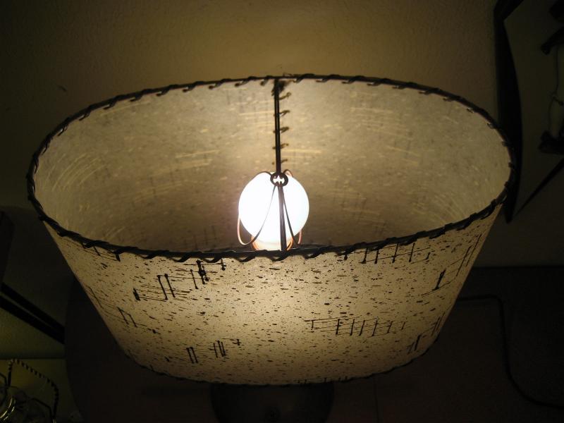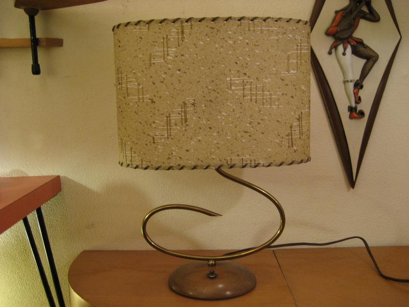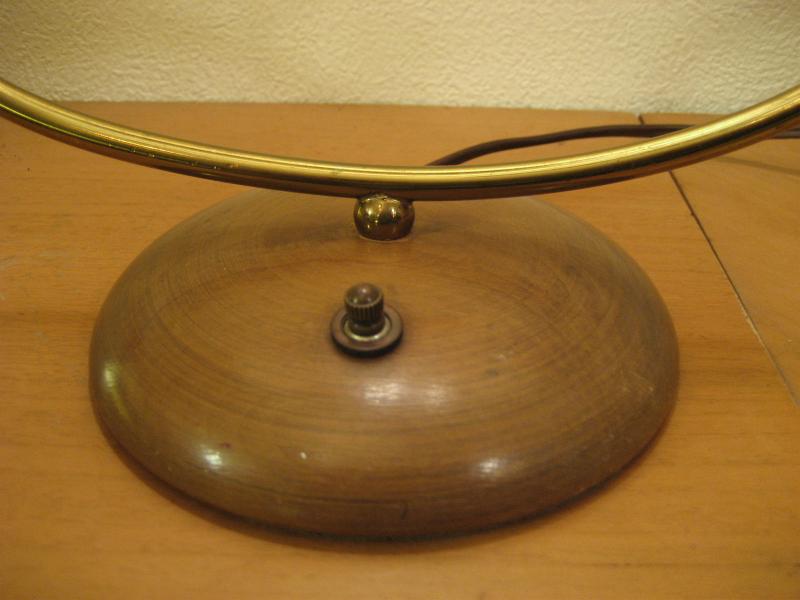 | ビンテージシェードランプ / 50年代 USA 楕円シェイプにカスリ調のシェード柄がクールなテーブルアクセントランプです。ウッドのランプベースにゴールドブラス製ブーメランシェイプのワイヤーデコ。お部屋のアクセントにGOODなライティングピース! 電源は家庭用コンセント対応コードで、スイッチはベースに付いています。 |