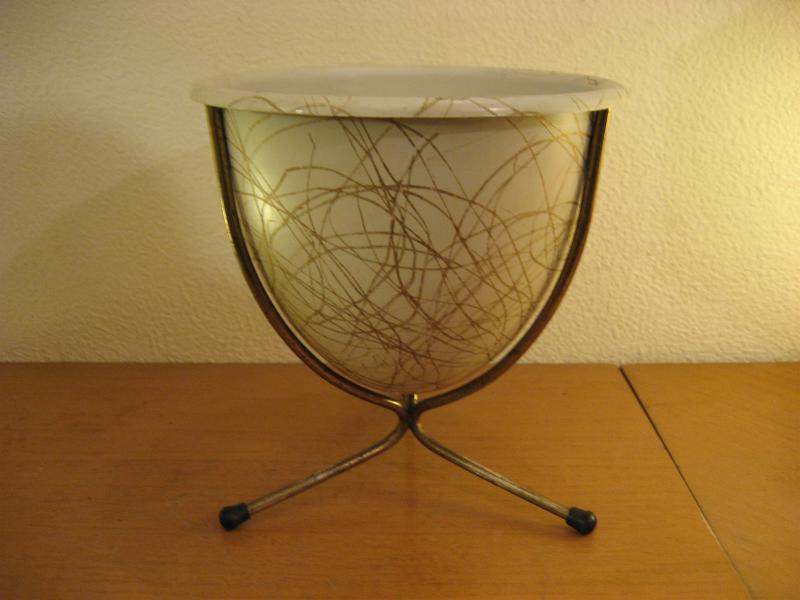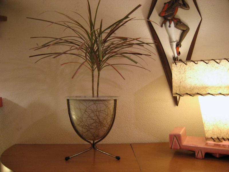 | アトミックテーブルプランター / 50年代 ゴールドフレームスタンドにプラスチック製のプラントホルダー。アイボリーベースにアトミックなゴールドドレーピングアクセント。テーブルやシェルフディスプレイにGOODなクールピース!!! |
