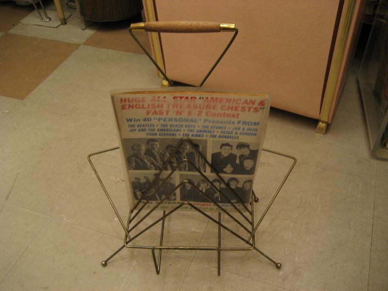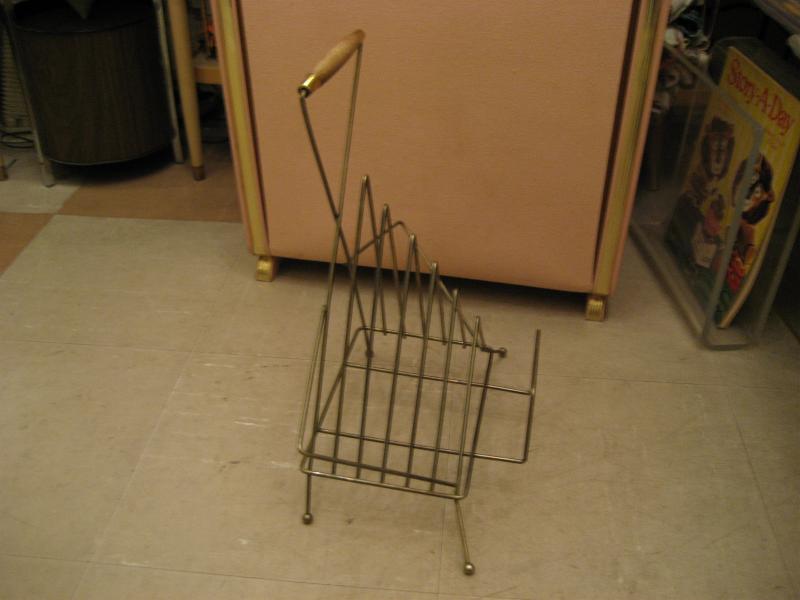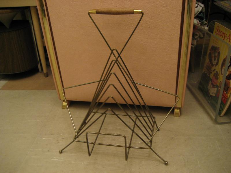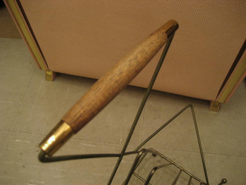| アトミックマガジンラック/レコードラック / 50年代. ゴールドワイヤーのアトミックレッグとウッドハンドル付きマガジンラックです。デザインが独特で存在感あり!ソファサイドやテーブルサイドなどにGOOD! |