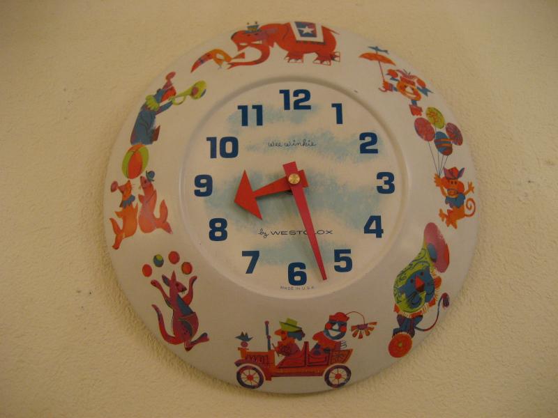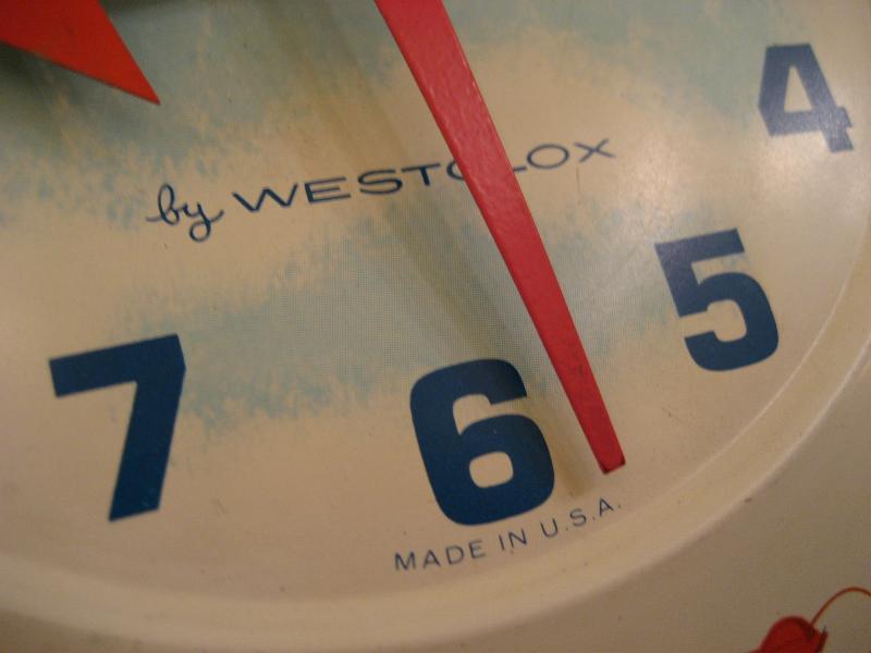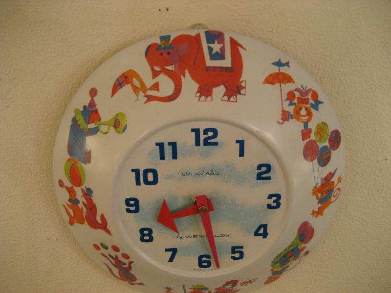 | サーカス絵柄壁掛け時計 / 60年代 ウェストクロックス社, MADE IN USA ウェストクロックスのWee Winkie(ちっちゃいおしり)というキュートな名前のウォールクロック。ホワイトメタルボディにかわいい動物達のサーカスが描かれています。文字盤の数字もとても見やすく、子供部屋やキッチンなどにもぴったり!時間を見るのが楽しくなるGOODなタイムピースです。 ムーブメントはバッテリータイプ(単3x1個使用)に交換済みですので時間も正確です。 |
