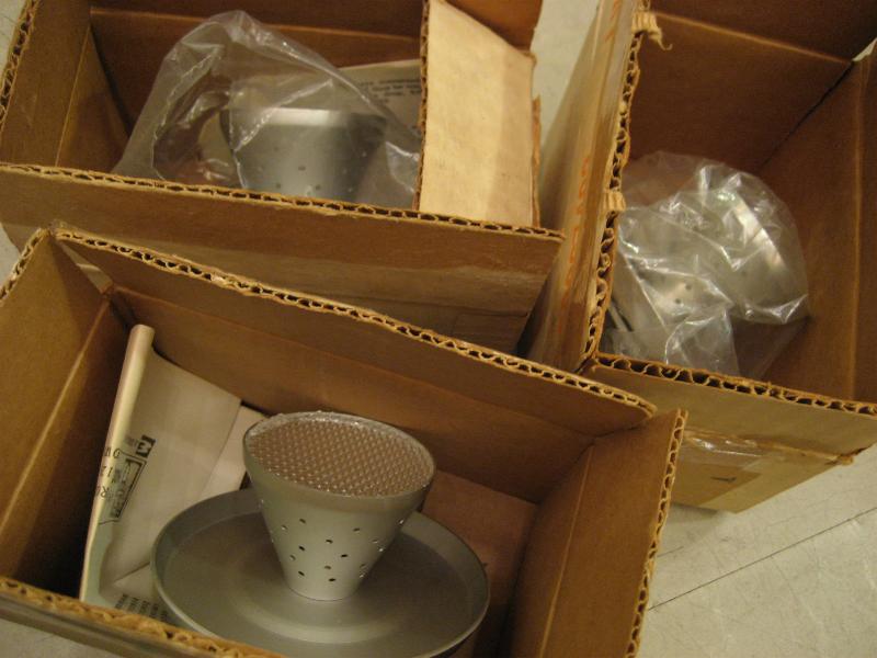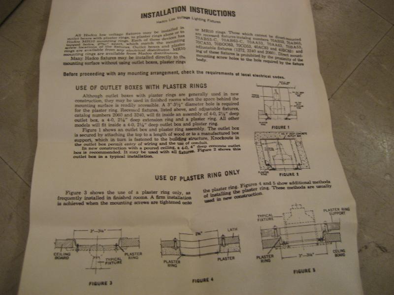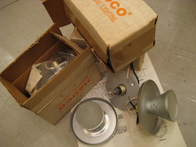 | アトミックシーリングランプ(ビルトインタイプ) / 50年代 USA. デッドストック(未使用) 天井シーリングのスモールスポット3個セットです。天井埋め込み(直付け)タイプでオリジナルボックスと取説(図入り英語)付きデッドストック!セカンド照明やアクセントなど使用目的も豊富。リフォームなどにもGOODなライティングピース! ※写真は取り付けた状態を再現するため、ボードに取り付けてセットアップし撮影いたしました |