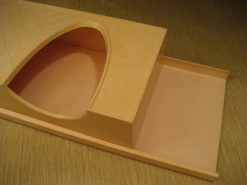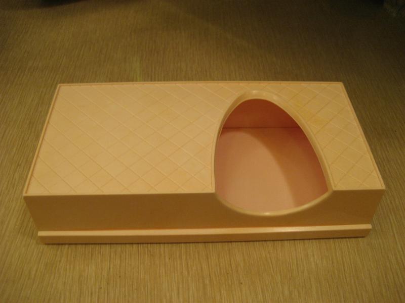 | ビンテージティッシュケース (ホルダー / ボックス) / 50年代 USA. ベビーピンクのボディカラーでダイヤ柄のビンテージティッシュボックス。取り出し口がアトミックなブーメランシェイプでセンターではないデザインがクールなバニティピース! 底面をスライドさせて入れ替えするタイプです。 |