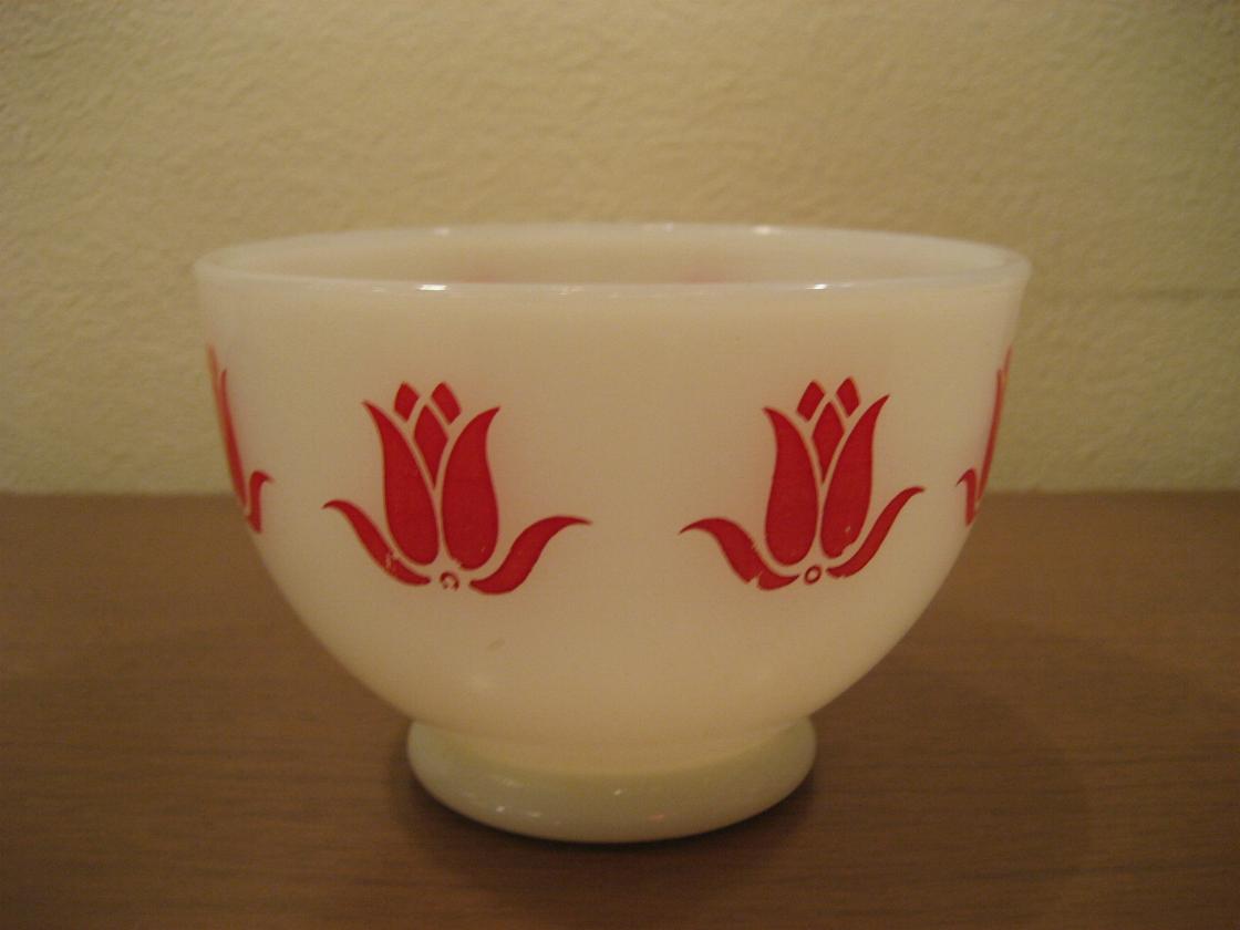 | ファイヤーキング カッテージチーズボウル チューリッププリントのボウルで当時チーズが入って販売していた物です。 |