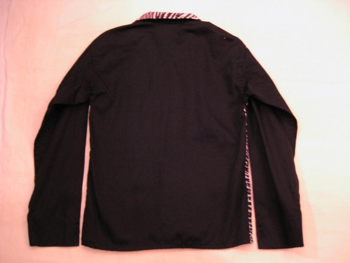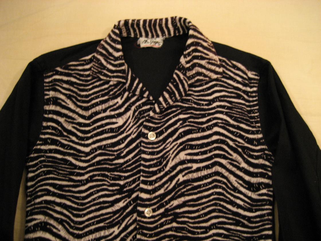 | ビンテージシャツ / 40-50年代 / USED ゼブラコーデュロイとブラックコットンサテンのクールシャツです。衿はオープンカラー、袖は古いシャツに見られる2枚袖(写真参照)、フロント裾にパッチポケット、ダブルステッチ。ディスプレイにもシブいです! 親子でキメるのにGOOD! For ロカビリーキッズ!!! |