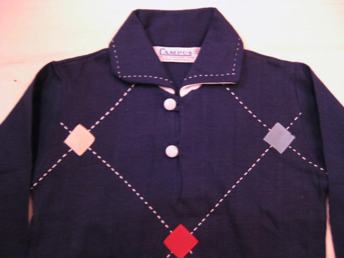| ビンテージシャツ / 50年代 / CAMPUS, MADE IN USA. デッドストック クールなアーガイル柄のプルオーバシャツです。素材はポロシャツなどに見られるスムース地を使用していてとても肌触りもよく、袖口も面倒なカフスではなく同素材のリブ使いで、子供服ならではの気遣いがされています。アーガイル柄の3色ひし形部分はプリントではなくパッチワークされているとても凝った作り!衿まわりハンドステッチ入り。 親子でキメるのにGOOD! For ロカビリーキッズ!!! |