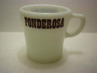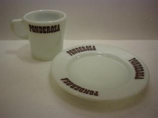 | パイレックス ポンデローザ マグカップ&プレート "PONDEROSA" というアメリカのステーキレストランで使用されていたカップとプレートです。 |