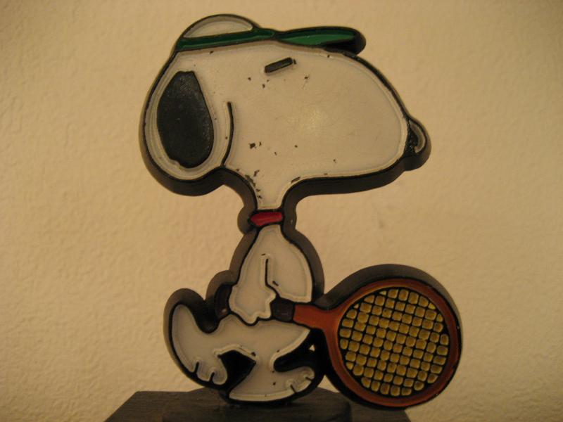 | SNOOPY TROPHY / 70年代 AVIVA社 スポーツシリーズのトロフィー。スポーツ大好きのスヌーピーですが、こちらはテニスのトロフィーです。 |