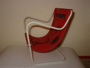 | SNOOPY / 1978, MADE IN JAPAN. スヌーピーのドールチェアー ワイヤーフレームに赤いビニルシートでスヌーピープリント |
