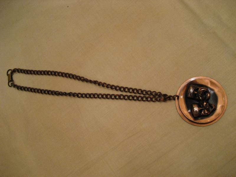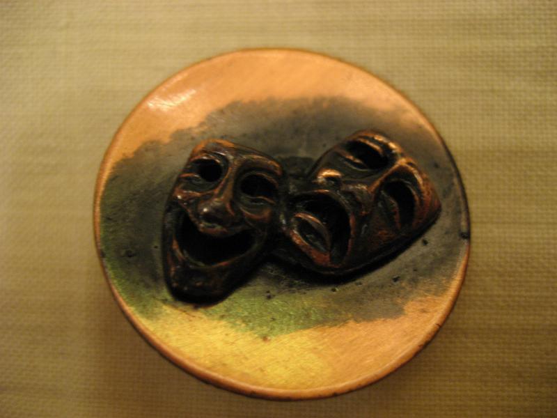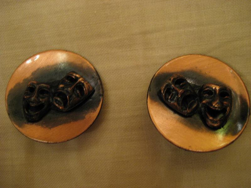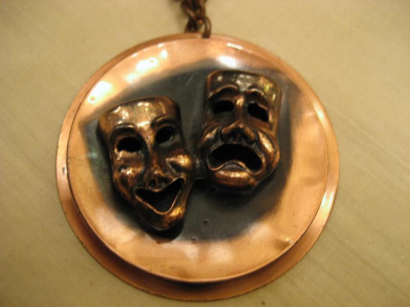 | ビンテージツーフェイスペンダント&イヤリング / 50-60年代 銅製ツーフェイスペンダントとイヤリングのセットです。どちらも円形パネルに泣き笑いのデコレーション。クールでキュートなドレスアップピース! |